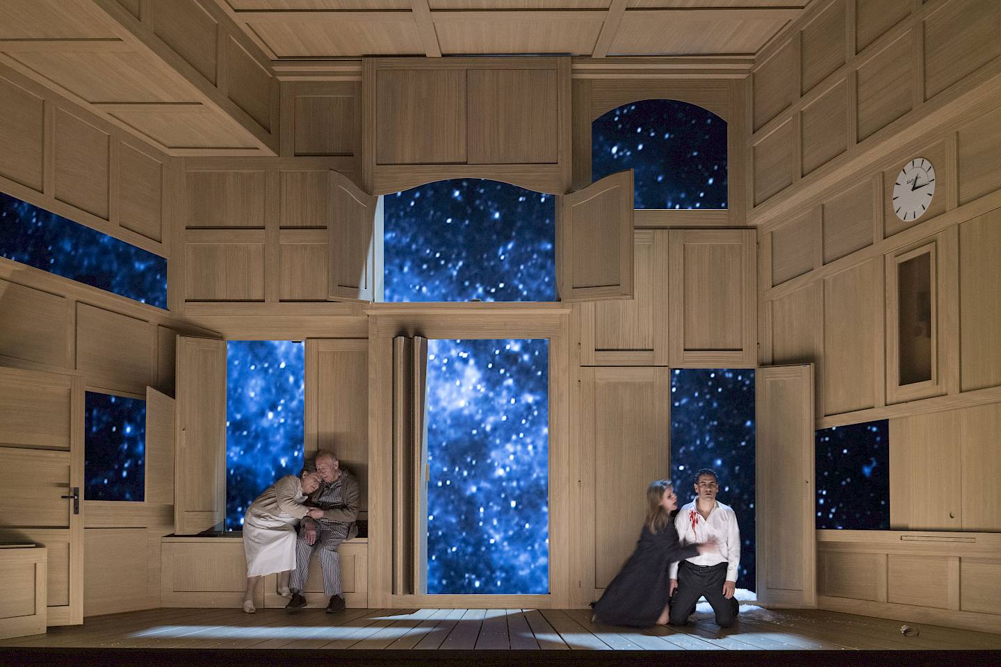 Goethe’s drama is echoed in Massenet’s score by emotionally wide-ranging vocal parts written on a grand scale. Juan Diego Flórez is undisputedly one of the best belcanto tenors of our times and embodies a tortured and nuanced Werther. «It’s not a profane appearance of any singer – it is an epiphany!» gushes the Neue Zürcher Zeitung in a rave review. At Flórez’s side, Franco-British mezzo-soprano Anna Stéphany sang her role début as Charlotte. The one-room staging by Tatjana Gürbaca cleverly makes the social stranglehold of oppression tangible. Should one come into the fold or escape?