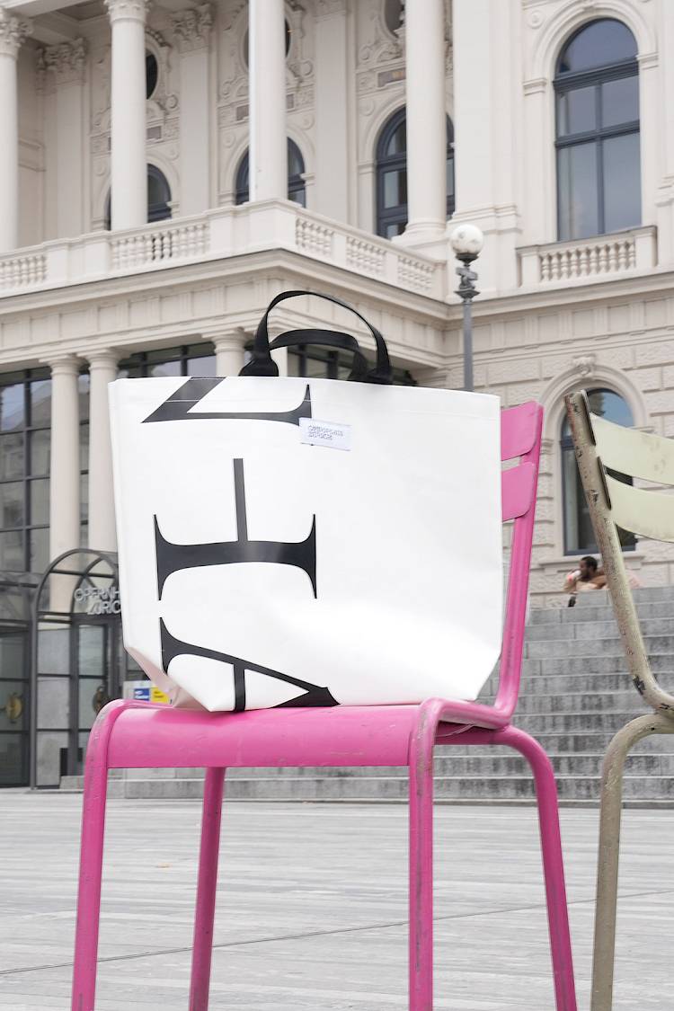 It is made from old tarps of our opera house trucks, giving them a second life.