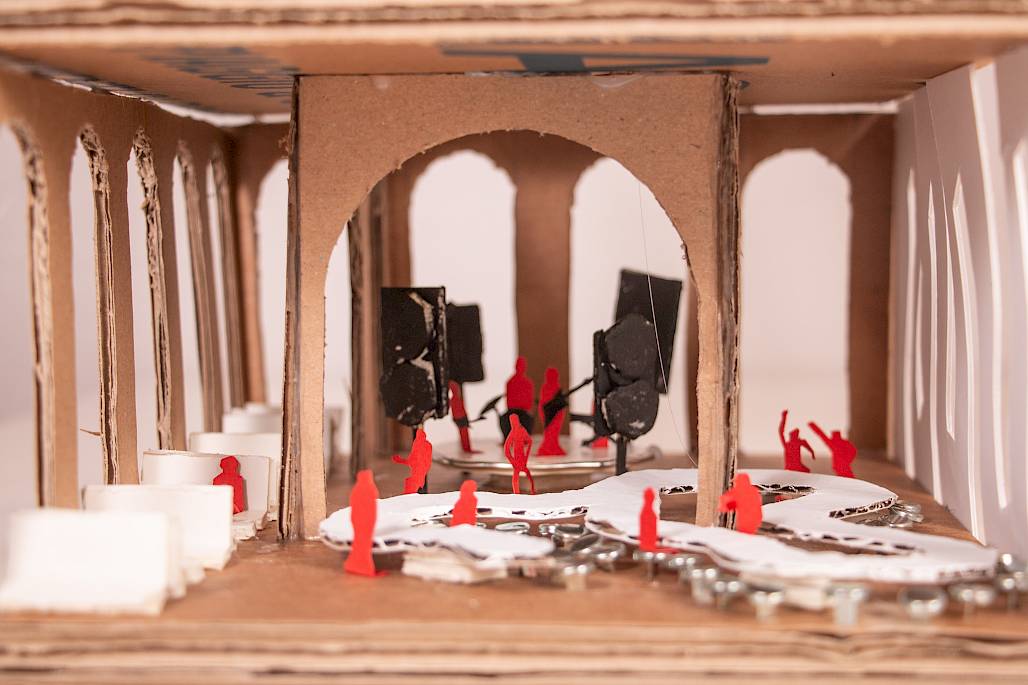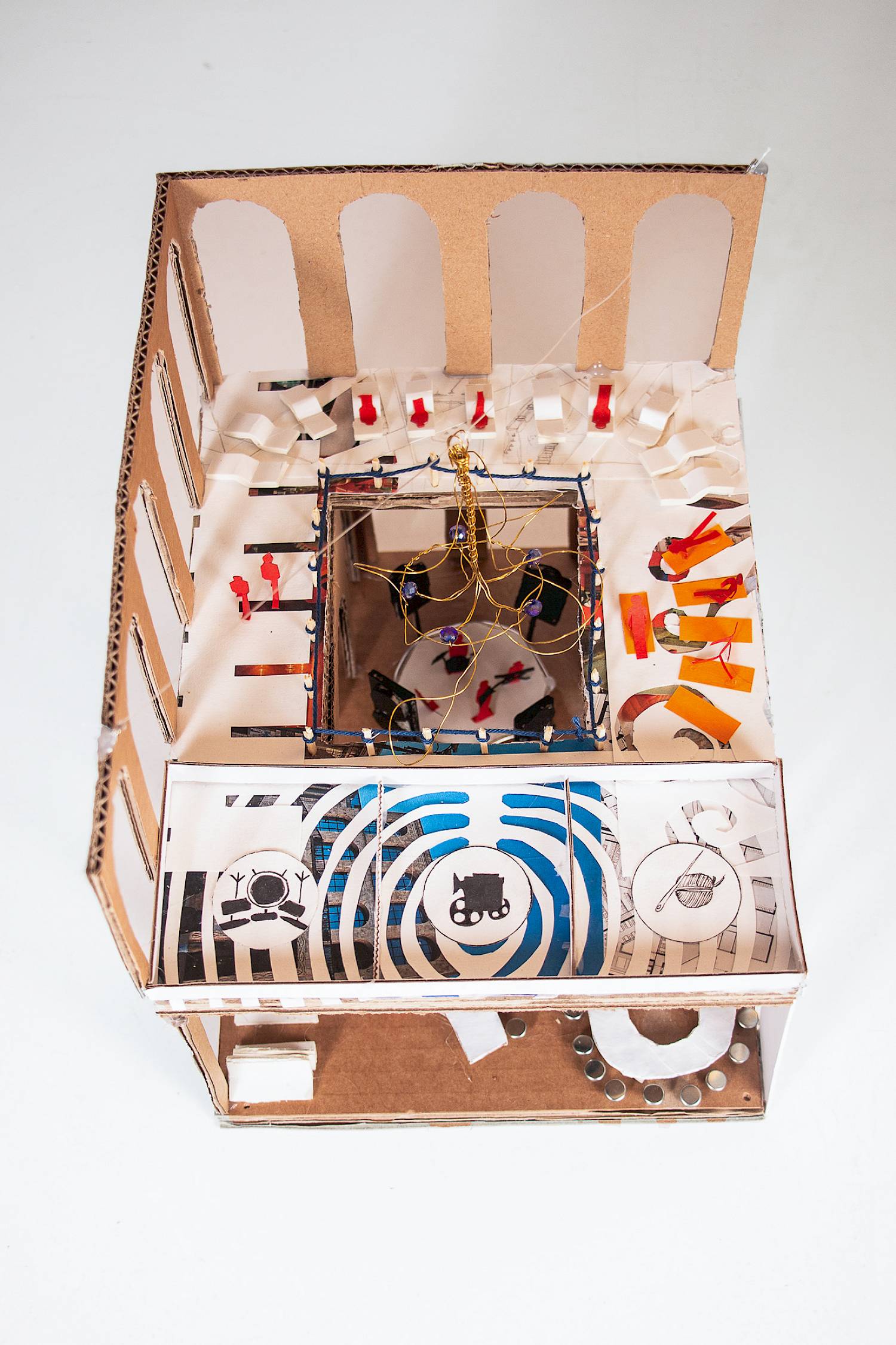 Das Gebäude ist zweigeschossig organisiert: Im Erdgeschoss befinden sich Bar, Tanzfläche und flexible Tischbereiche als sozialer Mittelpunkt. Im Obergeschoss liegen vier klar definierte Räume - Bandraum, Werk-/Textilraum (indem Reste aus der Kostüm- und Bühnenbildproduktion des Opernhauses verwertet werden können), Gruppen- oder Kinoraum - ergänzt durch eine offene Fläche mit einer zentralen Öffnung, die visuelle Bezüge zwischen den Ebenen ermöglicht.