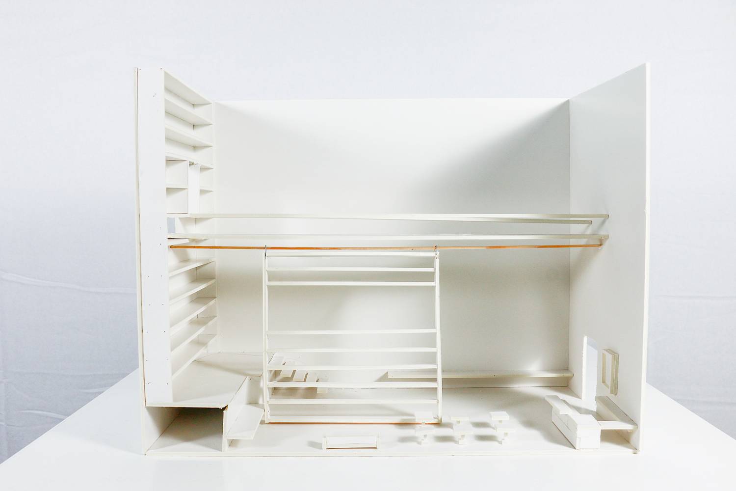 «Zu Beginn meines Projekts habe ich zur Geschichte des Opernhaus Zürich recherchiert. Mir gefiel die Idee, ältere Architektur wieder aufzugreifen. Allerdings wollte ich auch einen Raum schaffen, der zu den heutigen Bedürfnissen der Stadtbewohnern passt. Deshalb fragte ich mich, was für ein Ort ich selbst gerne besuchen würde. So entstand die Idee eines hohen, offenen Innenraums mit viel Luft, der ‚eine Bibliothek mit einem Café verbindet. Es ist ein Ort, an dem Menschen zusammenkommen können zum Lesen, Austauschen und Verweilen. Besucher können Bücher bringen, die sie nicht mehr benutzen, neue mitnehmen oder einfach vor Ort lesen. Ein wichtiges Element ist das Bücherregal unter der Brücke, die verschiedene Bereiche verbindet. Das Regal ist verschiebbar und ermöglicht es, den Raum flexibel zu teilen und unterschiedlich zu nutzen — beispielsweise auch für kleine Veranstaltungen. Die Sitzbereiche laden dazu ein, sich aufzuhalten und miteinander ins Gespräch zu kommen. Ich habe mich für die Kategorie Innenraum entschieden, weil mich interessiert, wie Innenräume die Atmosphäre eines Ortes prägen. Mit meinem Entwurf wollte ich einen offenen und gemeinschaftlichen Raum neben dem Opernhaus schaffen.»