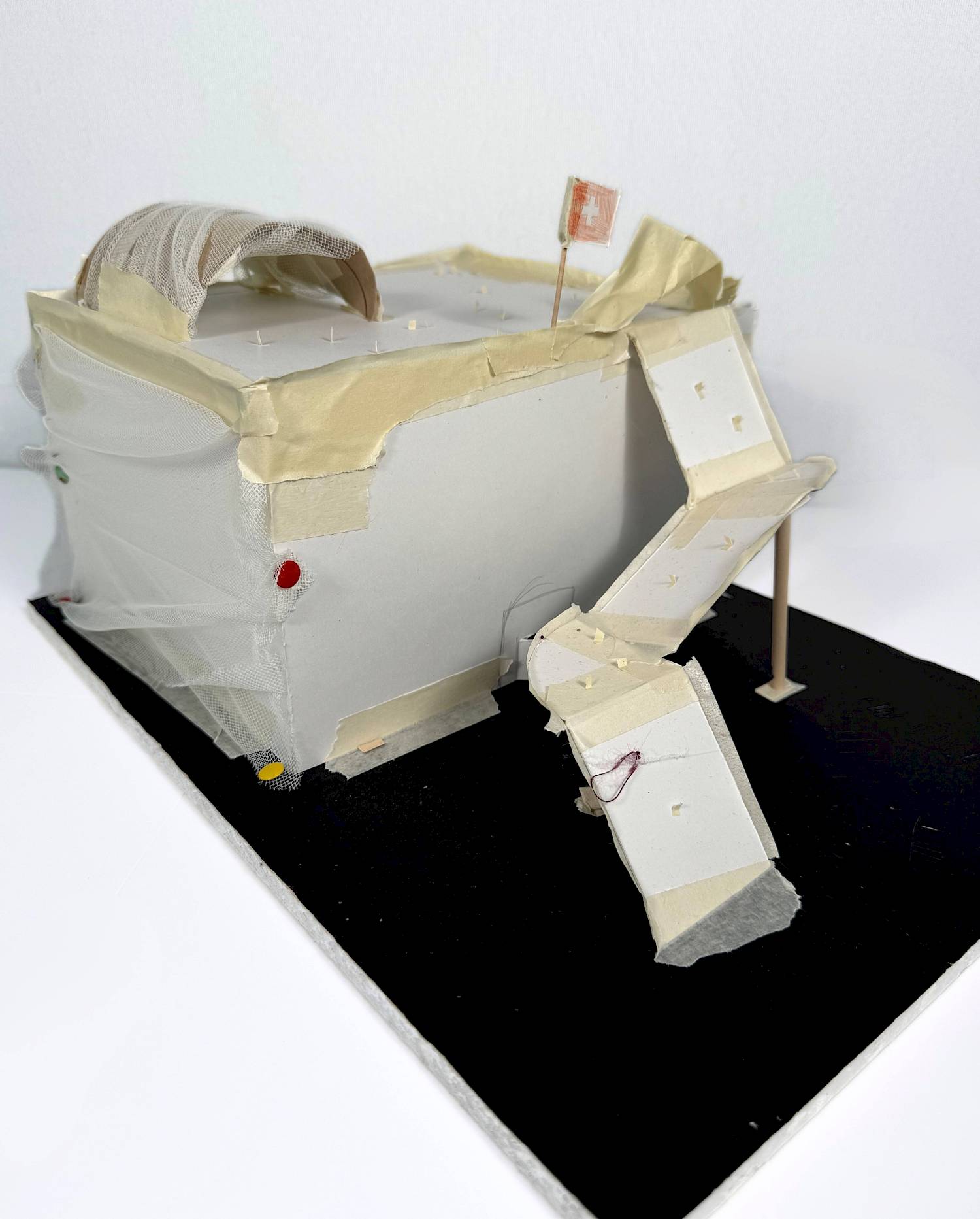 «Unsere Idee für das neue Gebäude neben dem Opernhaus ist ein offener Ort für alle Menschen. Es soll ein Haus sein, in dem sich jeder willkommen fühlt. Das Gebäude selbst ist rechteckig und ganz weiss gestaltet. Die weisse Farbe steht für Ruhe, Klarheit und Offenheit. Die Wände sehen aus wie ein leicht gewellter Stoff. Dadurch wirkt das Gebäude weich und lebendig und nicht hart oder streng. Ein besonderes Element meines Gebäudes ist die Dachterrasse. Sie ist ein Ort der Ruhe, aber auch der Begegnung, und rundet das Gebäude nach oben hin ab.