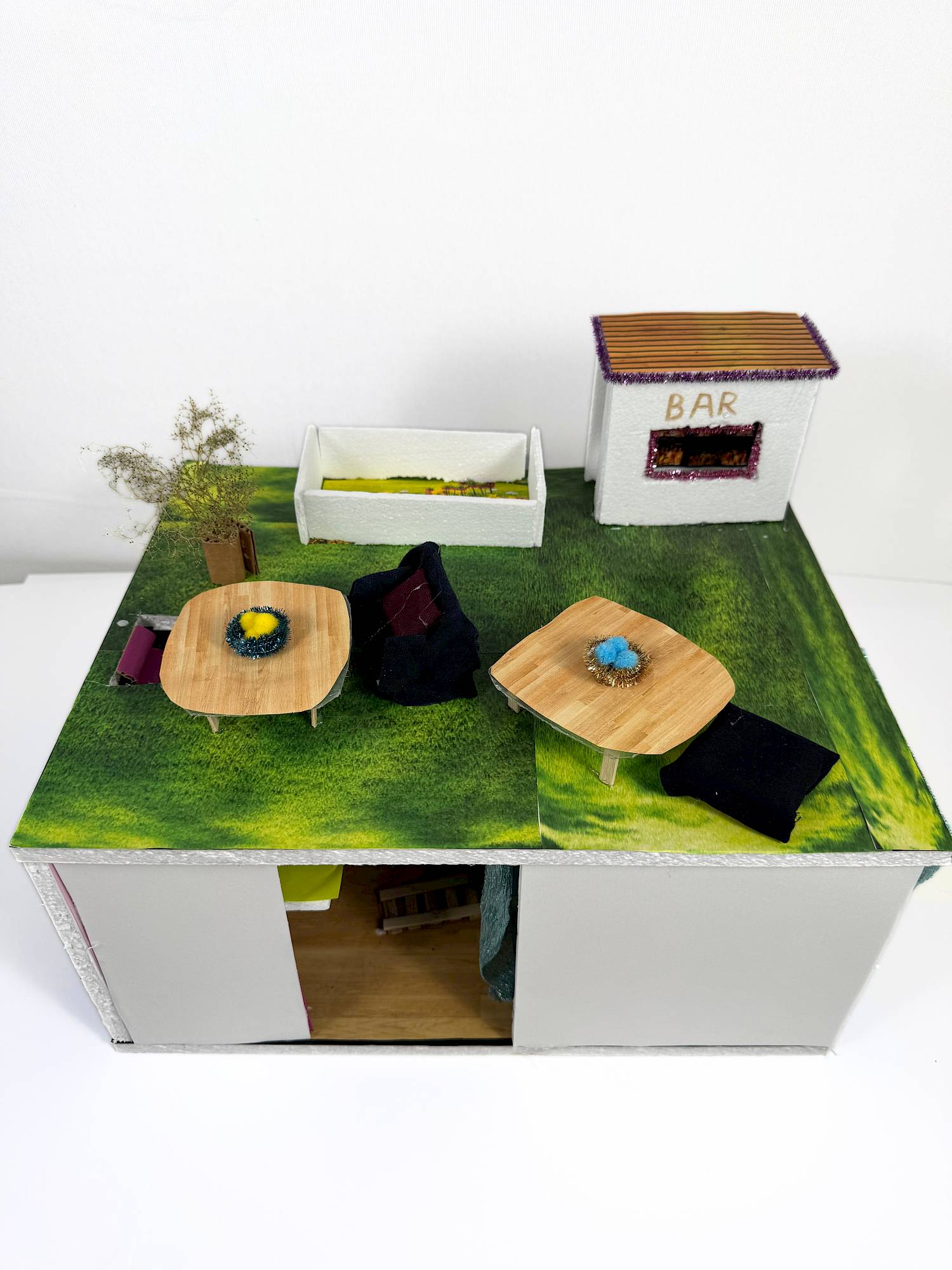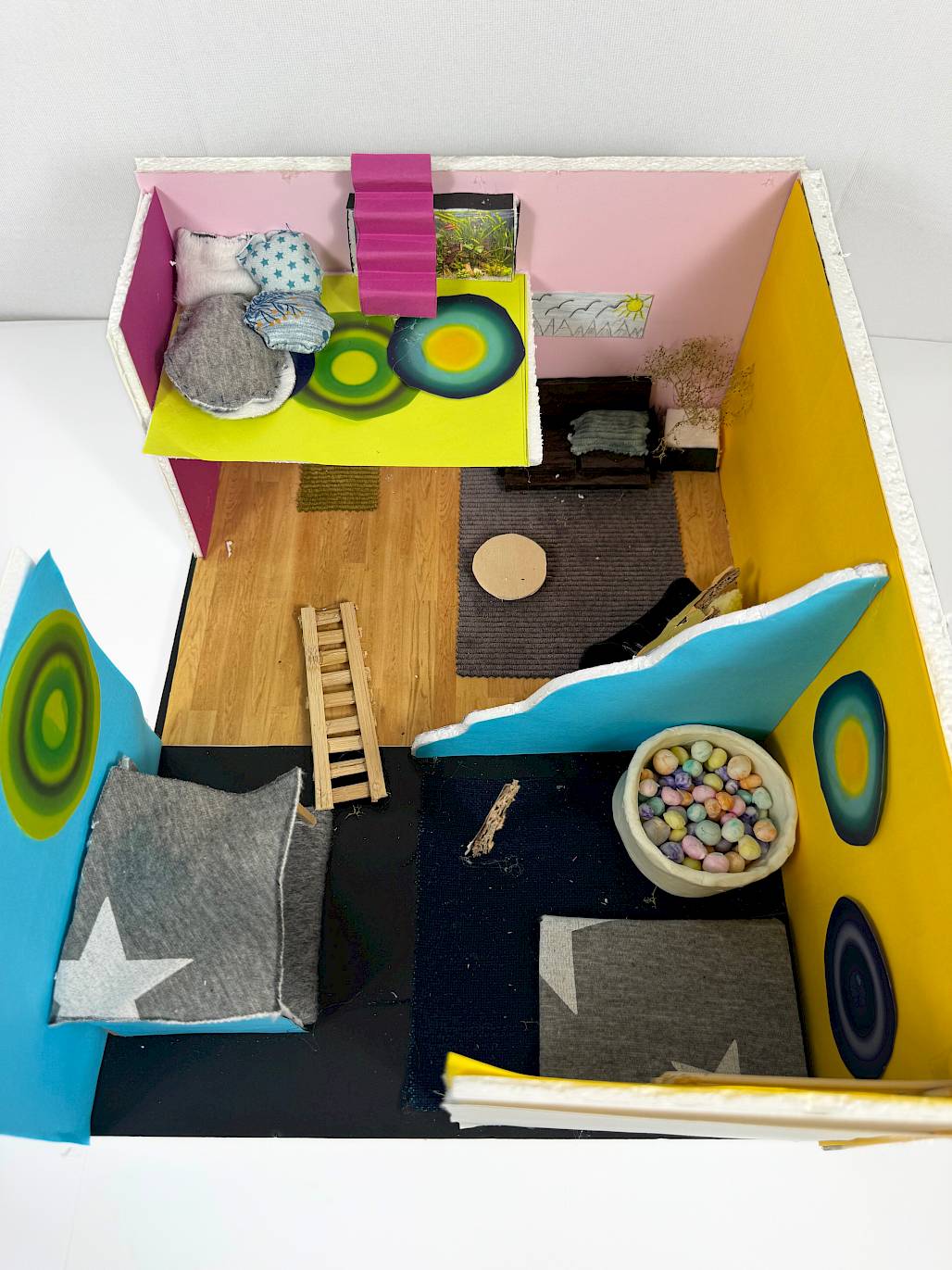 «Wir kommen von der Begabtenförderung namens Entdeckeria und sind im Architekturclub. Wir haben uns überlegt, dass es einen eher ruhigen Platz gibt und einen Platz, der etwas lauter ist. Beim lauten Platz können die Kinder spielen. Es gibt einen kleinen zweiten Stock über dem Ruheraum.