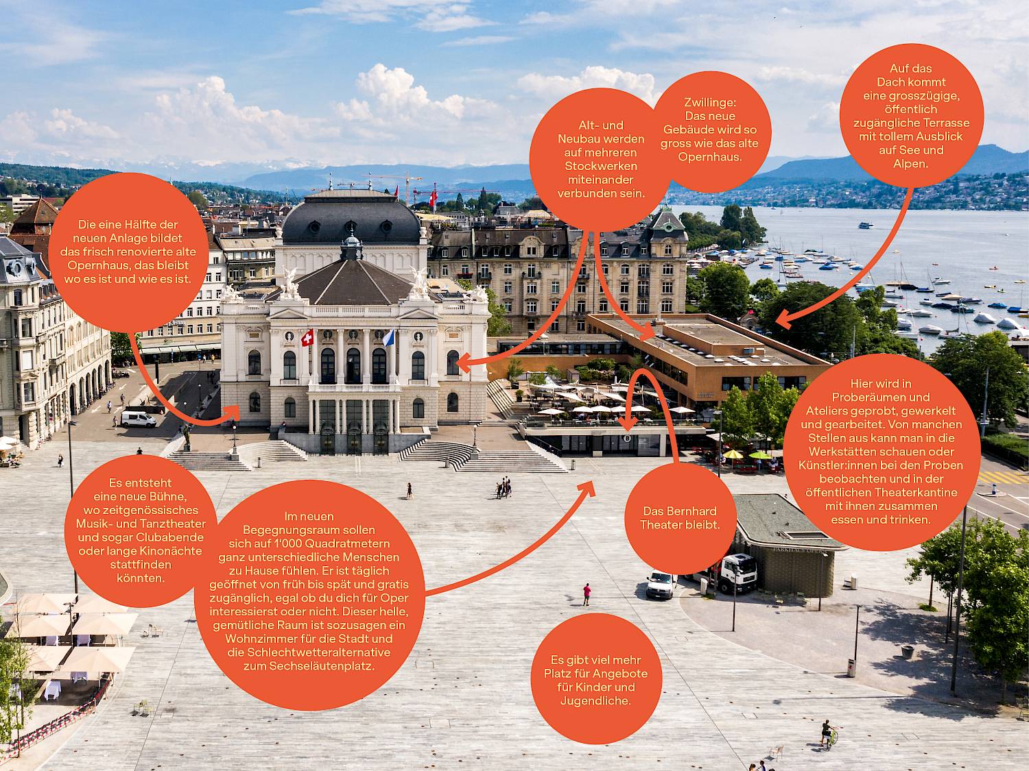 Zwischen Opernhaus und Zürichsee entsteht ein neues Gebäude – mit einem Begegnungsraum für alle und einer einladenden Aussichtsterrasse. Bevor die Profis loslegen, bist du gefragt: Wie wird ein Ort zur Wohlfühlzone für ganz unterschiedliche Leute?