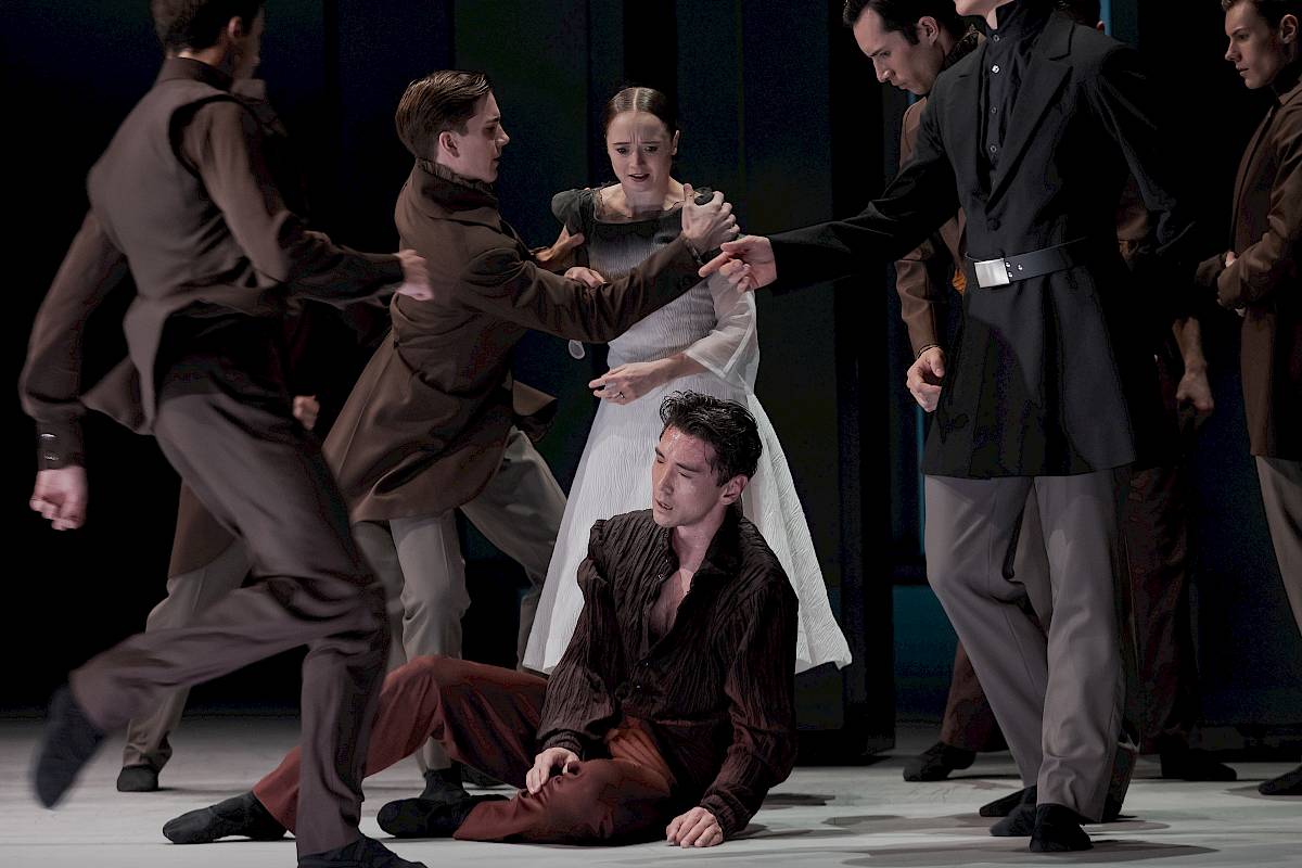 Für Robert und Clara ist die Begegnung mit dem 20-jährigen Johannes Brahms eine Art Erweckungserlebnis. Er wird zum Freund der Familie und nach Roberts Tod zum treuen Begleiter Claras. Wie weit deren Beziehung später ging, ist immer wieder Anlass für Spekulationen gewesen. Welche choreografische Antwort findest du auf diese Frage?