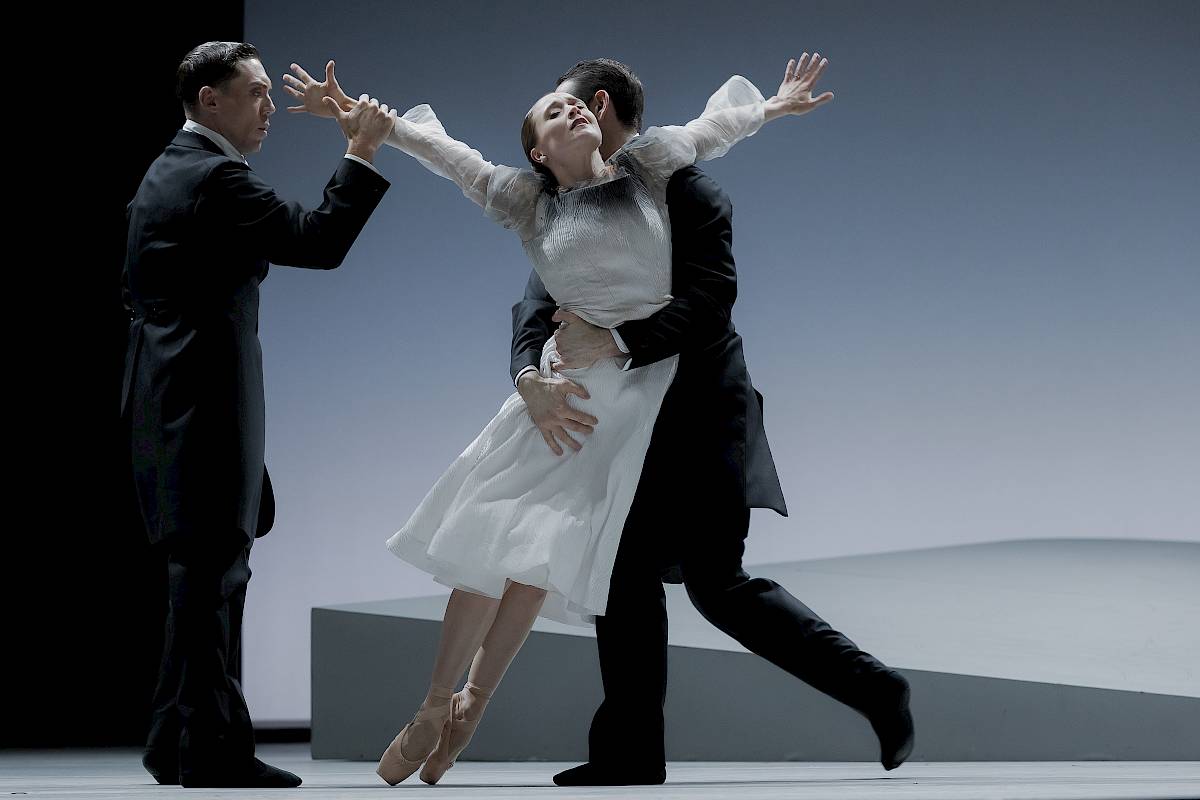 Diese emotionalen Berg-und-Tal-Fahrten bei Schumann sind eine echte Herausforderung, weil sie eine grosse Intensität in der Darstellung verlangen. Als Tänzer muss man sich wirklich darauf einlassen. Nur mit Technik und Choreografie kann man dieser Rolle nicht gerecht werden. Man muss in jeden Zustand eintauchen und darf dabei keine Hemmungen entwickeln. Karen Azatyan, unser neuer Erster Solist, mit dem ich die Rolle erarbeite, macht diese Reise wirklich mit. Er setzt meine Vorgaben um, bringt aber auch selbst sehr viele Anregungen in den kreativen Prozess ein. Das ist sehr hilfreich, weil ich selbst mich ja die ganze Zeit in die sieben Claras hineinversetzen und den Überblick behalten muss.