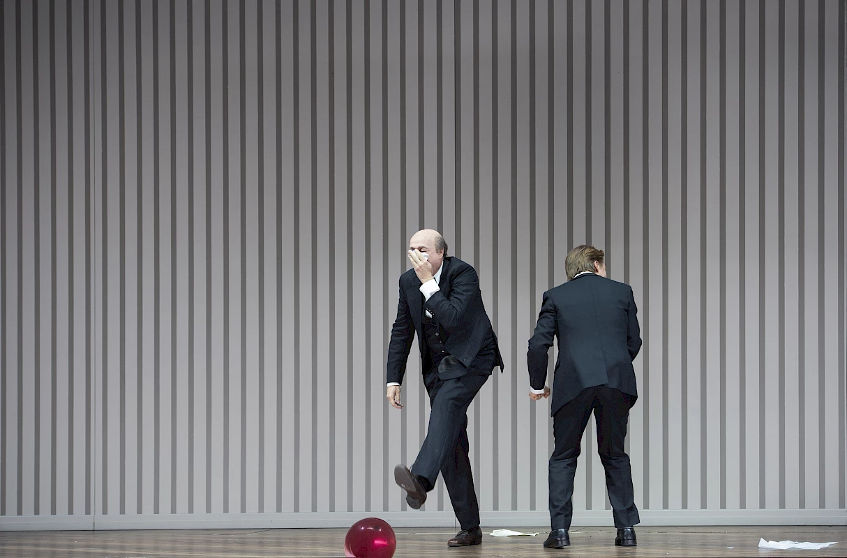 Das ist der Allgemeinplatz, der gerne behauptet wird: Das Leichte sei das Allerschwerste! Ich neige nicht zu dieser Mystifizierung. Das ist genauso Unsinn wie die Behauptung, dass eine Inszenierung nicht lustig wird, wenn auf den Proben zu viel gelacht wird. Natürlich darf und muss auf der Probe bei einer komischen Situation gelacht werden. Aber das Entscheidende ist, dass diese Situation stabil in jeder Aufführung reproduziert werden muss, jenseits des unschuldigen ersten Moments. Da beginnt die Arbeit, und man muss als Regisseur verstanden haben, worin genau die Komik einer Situation liegt. Es gibt ja immer auch diese Diskrepanz zwischen Aussen­ und Selbstwahrnehmung, die jeder kennt: Es passiert einem ein absurdes Missgeschick, das man überhaupt nicht lustig findet, aber hinterher, wenn man es erzählt, finden es alle wahnsinnig komisch. So ist es auch auf der Bühne: Das Publikum soll es lustig finden und nicht der Darsteller, der muss alles ernsthaft spielen. Man sieht: Mich als Regisseur interessieren die Komödien sehr, und deshalb sollen sie sich auch im Spielplan meines Hauses wiederfinden.