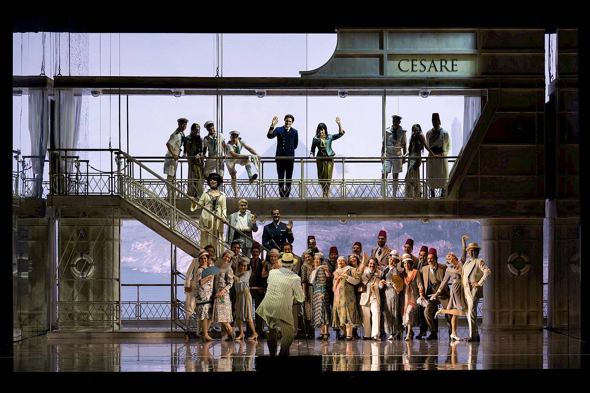 Die Handlung der Oper ist unglaublich dramatisch, nicht wahr? Historisch gesehen sind viele Ereignisse hier falsch, und die meisten Personen sind sich so nie begegnet. Fact-Checking machen Historiker:innen ja immer gerne, auch bei Historienfilmen. Aber darum geht es bei Händel überhaupt nicht. Im Barock wurde das Hochleben, das Cleopatra am alexandrinischen Palast geführt haben soll, zelebriert. Die berühmte Anekdote, nach der die Königin eine unschätzbar wertvolle Perle in Essig aufgelöst und getrunken haben soll, passte perfekt in die Dekadenz und Üppigkeit des Barock. Cleopatras Leben war das Abbild des eigenen Hofideals; Liebe und Verführung wurden in dieser Zeit eher positiv konnotiert. So konnte auch Shakespeare aus den gerade erst wiederentdeckten und neu übersetzten Schriften des Griechen Plutarch aus einem Moralstück eine tragische Liebesgeschichte erdichten und Cleopatra in den Liebestod gehen lassen. Plutarchs Biografien über Griechen und Römer boten sich für Dramatisierungen deutlich besser an als dokumentarische Quellen wie Steuerbefreiungen beispielsweise, die auch Cleopatra erlassen hat. Zu Händels Zeit waren Shakespeares Römerdramen «Julius Caesar» und «Antonius und Cleopatra» in England verbreitet und bekannt. Insofern ist es erstaunlich, dass sich Händel nicht für eine tragische Cleopatra-Antonius-Oper entschied, sondern die Figur des Caesar in den Mittelpunkt rückte.
