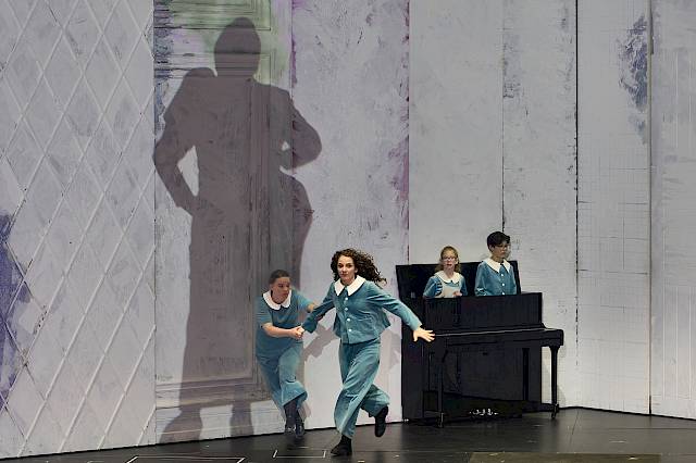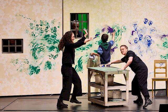 In «Hänsel und Gretel» wird die «Herstellung von Furcht» zu einem dramaturgischen Prinzip: Wie entsteht Bedrohung aus Licht, Schatten, Klang? Wie verwandelt sich ein vertrauter Raum in einen unheimlichen? So werden die beweglichen Wände des Bühnenbilds zu Akteuren: Sie verschieben sich, wachsen, drängen die Figuren in immer engere Räume. Das Elternhaus, das Kinderzimmer, das Hexenhaus – sie sind aus denselben Materialien gebaut. Das, was zu Beginn noch Geborgenheit war, kehrt später als Bedrohung wieder. «Das Unheimliche», sagt Luz, «ist immer etwas, das man schon kennt – nur anders beleuchtet. Ein Detail aus der Kindheit, das verzerrt und vergrössert wiederkehrt und zur Bedrohungskulisse wird.»