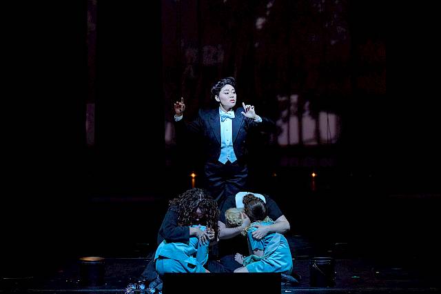 Das Stück beginnt auf einer leeren Bühne. Alles, was eine Oper braucht, wird vor den Augen des Publikums hereingetragen: Orchesterinstrumente, Requisiten, Scheinwerfer, Projektoren und Nebelmaschinen. «Ich möchte, dass man den Traum entstehen sieht», sagt er. «Das Theater zeigt seine Mittel, und trotzdem entsteht Magie.» Diese doppelte Bewegung – Entzauberung und Wiederverzauberung – prägt die ganze Inszenierung. Nach und nach verdichtet sich die Werkstattatmosphäre zur Märchenwelt. Schatten werden zu Figuren, Geräusche zu Musik, die reale Bühne zu einem Zauberwald. Was anfangs wie ein Blick hinter die Kulissen wirkt, verwandelt sich langsam in die Geschichte selbst. Luz zitiert dafür gern den Filmregisseur David Lynch: «We are like the dreamer who dreams, and then lives inside that dream. But who is the dreamer?». Das Publikum beobachtet, wie der Traum hergestellt wird, in welchem sich die Spielenden verlieren. Am Ende gibt es kein Aussen mehr.
