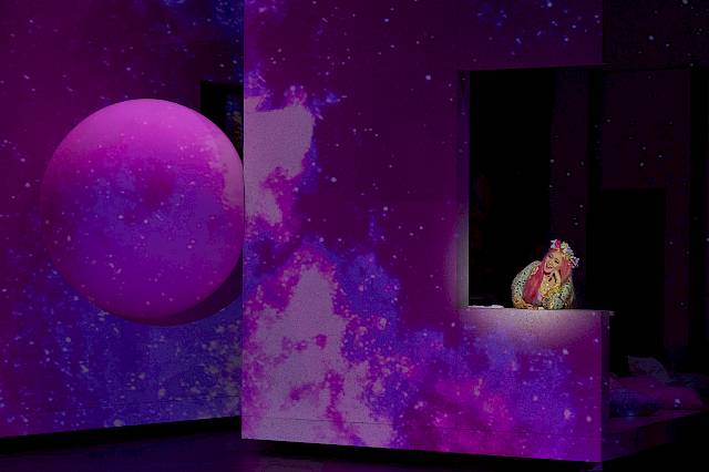 Für den Regisseur Tomo Sugao, den Bühnenbildner Paul Zoller und die Kostümbildnerin Michaela Barth war schnell klar, dass eine grautönige Mondkrater-Landschaft keine attraktive Umgebung für diese Komödie sein würde. Dem Team war es wichtig, die Geschichte in unserer Gegenwart beginnen zu lassen, um von hier aus in eine stark kontrastierende Fantasiewelt zu gelangen.