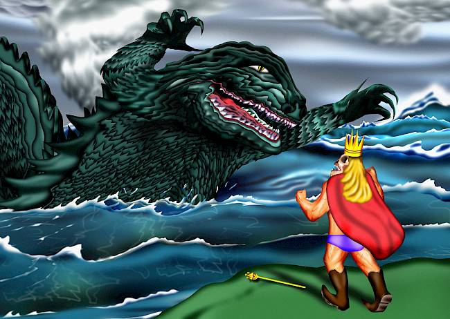 Der bereits genannte König-Präsident trifft darin auf das Seemonster Gorgonzilla, das aber kein eindimensionaler Bösewicht ist. Wie verstehst du diese Figur?