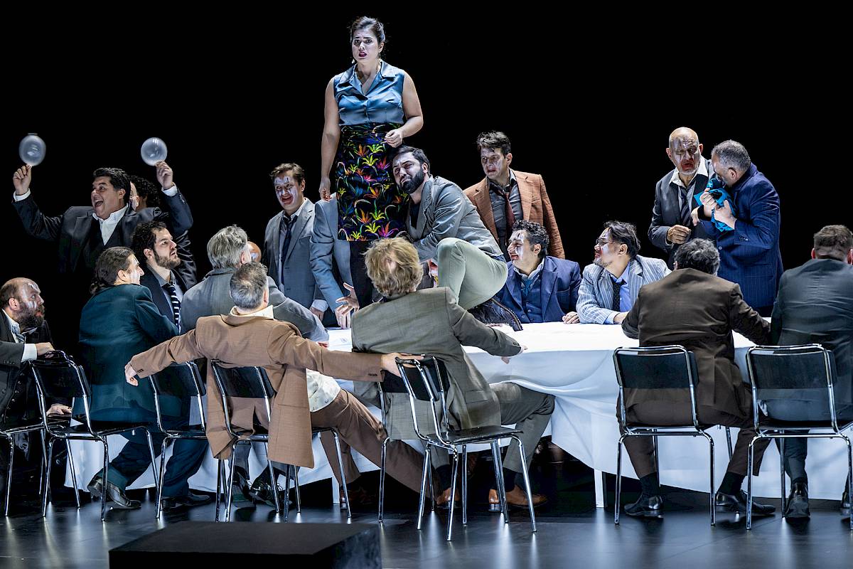 Ich sag es vorsichtig: Sie können bedrohlich für alle werden, die nicht dazugehören. Das müssen ja nicht nur Frauen sein, es können auch andere Ausgegrenzte sein wie Homosexuelle oder Menschen anderer ethnischer Herkunft. Ich denke tatsächlich, dass aus homogenen Gruppen, weil sie ein Aussen brauchen, strukturell Bedrohung erwächst. In den Opern ist das auch ein Grund, warum immer Frauen geopfert werden, denken Sie nur an Gilda in Rigoletto. Die Frauen sind das notwendige Opfer, das aus der Kohärenz einer Gruppe hervorgeht. Sie sind dann aber in der Logik der Opernhandlung auch das Opfer, das die Gruppe entlarvt. Über die weibliche Leiche wird ein Blick von aussen installiert: Schaut auf die Konsequenz dessen, was da passiert ist. Schadenfreude kann eben auch zu realem Schaden führen. Das zeigt Oper, auch um den Spiegel auf uns Zuschauer zurückzuwerfen: Habt ihr euch amüsiert? Und worüber?