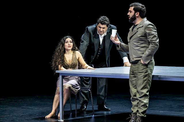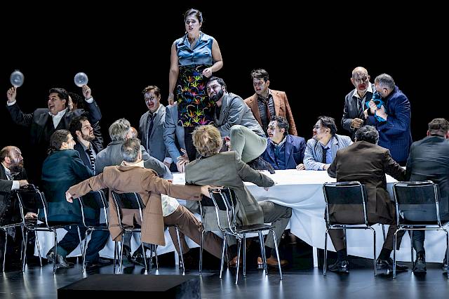 Mit Herabsetzungen und Demütigungen. Für das Fest des ersten Aktes hat Verdi eine feiernde Männergesellschaft komponiert, deren Vergnügen darin besteht, den anderen zu erniedrigen. Man fragt sich: Wo sind eigentlich die Frauen?