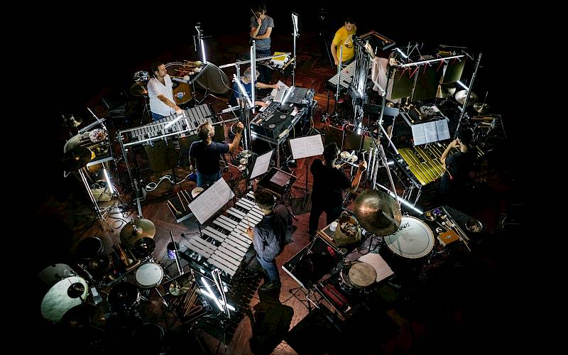 DM: Ich hatte zunächst eine klare Vorstellung meiner künstlerischen Auseinandersetzung mit den genannten Themen. Katharinas künstlerisches Universum, in dem Erinnerung, Dokumentation, Archivierung und der Akt des Erzeugens von Erinnerungen eine zentrale Rolle spielen, hat mich dazu inspiriert, meine Komposition ebenfalls als Reflexion über das kollektive Gedächtnis zu betrachten. So trägt jede:r Perkussionist:in ein persönliches rhythmisches Muster als Teil der eigenen Erinnerung mit sich, welches sie nutzen, um mit den Geschichten erzählenden Sänger:innen zu improvisieren. Einige dieser Momente wurden zu kollektiven Passagen weiterentwickelt. Die Perkussionist:innen nutzen diese persönlichen Muster, wenn sie umgesiedelt werden, um neue Verbindungen zwischen sich selbst und dem Ort, den sie verloren haben, zu knüpfen und so weiterhin neue Erinnerungen und neue Sprachen zu schaffen, die in den ursprünglichen Mustern verwurzelt sind.