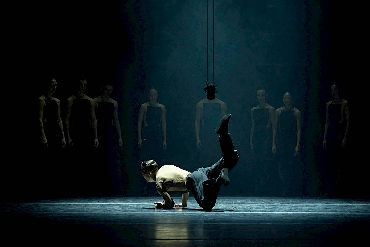 Alle drei sind nach wie vor eine grosse Inspiration für mich, und ich bin wirklich stolz und aufgeregt, diesen Abend mit ihnen zu teilen. Aber machen wir uns nichts vor: Ich bin der Neue in diesem Quartett, das Greenhorn. Deshalb stellt sich auch hier die Frage, wie ich mich in diesem Programm strategisch positionieren kann. Wie kann ich das Thema des Abends umsetzen und mich gleichzeitig mit etwas Eigenem präsentieren, das mich nicht automatisch dem Vergleich mit diesen Choreografen-Legenden aussetzt? Die Stücke dieses Abends haben einen gemeinsamen Nenner, weil sie uns ganz ohne ablenkende Ausstattung sozusagen «bare bones» präsentieren. Wir sehen menschliche Körper in einem leeren Raum. Roh, pur und unverfälscht. Eine wunderbare Idee. Da meine drei Kollegen vor allem die Form des Pas de deux in den Mittelpunkt ihrer Stücke gestellt haben, wollte ich herausfinden, wie es sich in einem leeren Raum mit einer richtig grossen Tänzergruppe arbeiten lässt. Ich möchte wissen, welche Energie sich mit solch einer Gruppe erzeugen lässt und in einem schnellen Timing voller Veränderung gleichzeitig über die Vergänglichkeit der Zeit reflektieren.