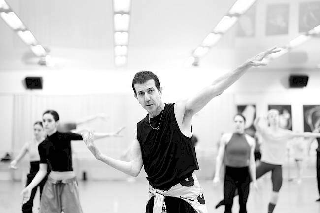Alle drei sind nach wie vor eine grosse Inspiration für mich, und ich bin wirklich stolz und aufgeregt, diesen Abend mit ihnen zu teilen. Aber machen wir uns nichts vor: Ich bin der Neue in diesem Quartett, das Greenhorn. Deshalb stellt sich auch hier die Frage, wie ich mich in diesem Programm strategisch positionieren kann. Wie kann ich das Thema des Abends umsetzen und mich gleichzeitig mit etwas Eigenem präsentieren, das mich nicht automatisch dem Vergleich mit diesen Choreografen-Legenden aussetzt? Die Stücke dieses Abends haben einen gemeinsamen Nenner, weil sie uns ganz ohne ablenkende Ausstattung sozusagen «bare bones» präsentieren. Wir sehen menschliche Körper in einem leeren Raum. Roh, pur und unverfälscht. Eine wunderbare Idee. Da meine drei Kollegen vor allem die Form des Pas de deux in den Mittelpunkt ihrer Stücke gestellt haben, wollte ich herausfinden, wie es sich in einem leeren Raum mit einer richtig grossen Tänzergruppe arbeiten lässt. Ich möchte wissen, welche Energie sich mit solch einer Gruppe erzeugen lässt und in einem schnellen Timing voller Veränderung gleichzeitig über die Vergänglichkeit der Zeit reflektieren.