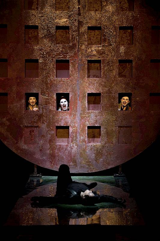 Peking, in märchenhafter Zeit. Ein Mandarin verkündet dem Volk das Gesetz: Die Prinzessin Turandot wird nur jenen Mann zum Gatten nehmen, der ihre drei Rätsel zu lösen vermag. Kann er es nicht, verfällt er dem Henker. Dieses Schicksal, das schon vielen beschieden war, trifft nun auch den Prinzen von Persien. Das Volk giert nach dem Schauspiel der blutigen Hinrichtung, Wachen schreiten gegen die erregte Menge ein. Im Tumult erkennt Calaf, der verbannte Sohn des gestürzten Tatarenkönigs, der inkognito in Peking weilt, seinen tot geglaubten Vater Timur. Dieser wird von der Sklavin Liù begleitet, die Calaf seit langer Zeit «eines Lächelns wegen» liebt.